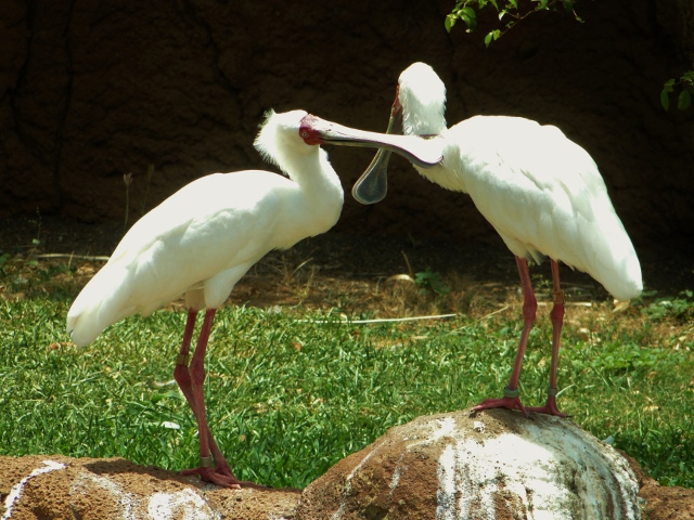 The common myna with the extra white plumage got my curiosity up so I tried to find information about it on the internet, to no avail.   I guess it is a rare case of too much white on this species.   At any rate, that is how I discovered the white Bali myna on the web.  In 2000 the IUCN Species Survival Commission declared the common myna one of the world's most invasive species.   I am not really fond of these birds; they are noisy and have an ugly screech.   There was one myna I enjoyed, though, not long after I moved to Hawaii.   I first lived in Makiki suburb, which was home to a myna that used to give frequent wolf whistles.   I heard it often from where I lived, and it was great to get a wolf whistle from him when I walked down the street !  <Sigh !  Big grin.>  I attended a church not too far from my apartment, and one Sunday that whistling myna was interrupting our Sunday School class so much that the preacher's wife  also interrupted the study and said something to the effect of "Who taught that bird to whistle?"  (It has been several years since that incident so I cannot remember all of her exact words.)   The windows were open in our class so we got a good earful.  :-)